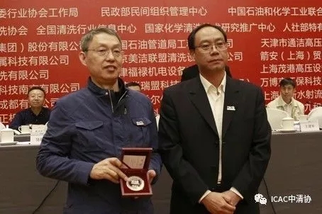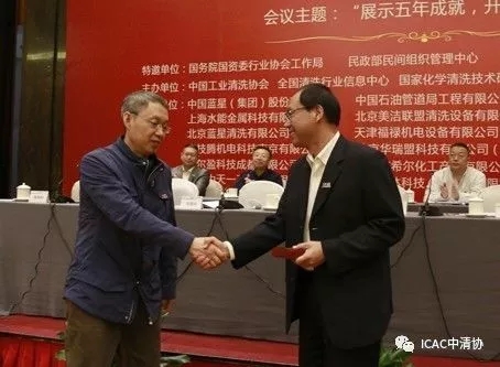 王建軍理事長代表新成立的第二屆理事會向離任的第一屆理事會領導們表達了真誠的感謝。參會代表一致同意推舉任建新同志擔任中國工業清洗協會第二屆理事會名譽理事長,聘請陸韶華、葛書義、沈忠厚、李根生擔任中國工業清洗協會高級顧問。并由王建軍理事長親自向為協會高級顧問頒發了聘書紀念章。