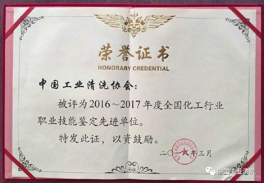 4月9日至10日,中國工業(yè)清洗協(xié)會應邀出席了全國化工行業(yè)職業(yè)技能鑒定工作會議,會上協(xié)會鑒定站被評為2016-2017年度全國化工行業(yè)職業(yè)技能鑒定先進單位,協(xié)會秘書處趙智科秘書長、培訓部主任陳懷宇榮獲“化工職業(yè)技能鑒定先進工作者”稱號。