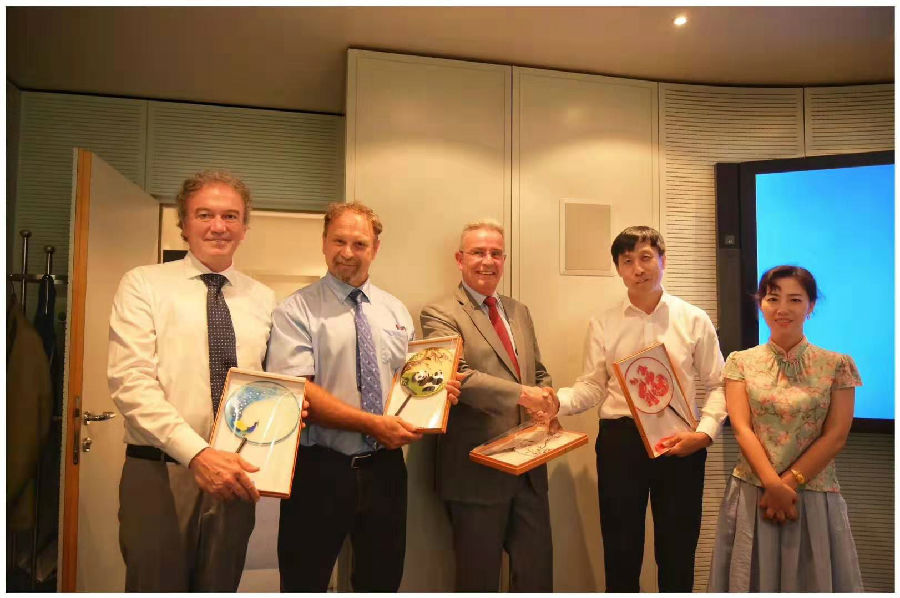 考察團向應用化學品國際集團公司送上來自中國的精美文化禮品
