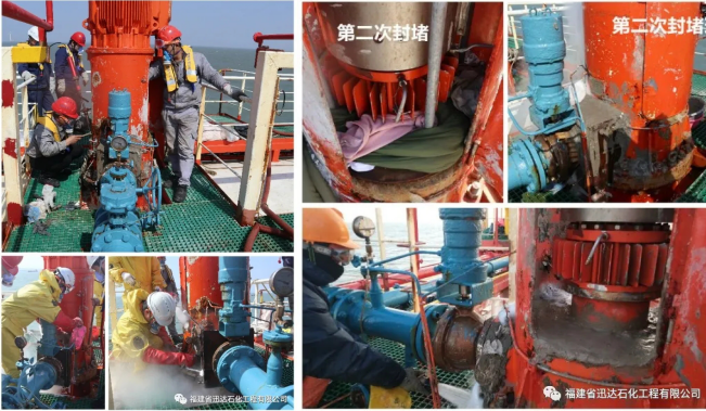 2月23日,經(jīng)現(xiàn)場檢測,泄漏介質(zhì)完全消失。天津安固和福建迅達的隊員們憑著過人的膽識和精湛的技術,克服了船艙狹小和海上環(huán)境不利作業(yè)的諸多困難和未知風險,經(jīng)過5個晝夜連續(xù)奮戰(zhàn),盡全力排除萬難,運用先進的帶壓堵漏技術和特制密封劑,取得封堵作業(yè)圓滿成功,為后續(xù)的船船過駁搶險作業(yè)創(chuàng)造了條件。