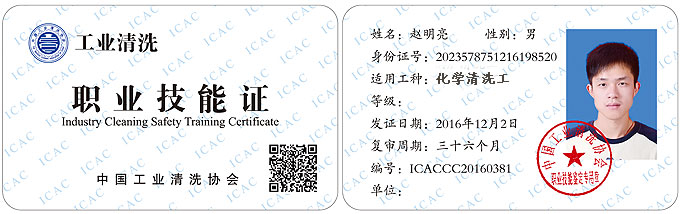 中國工業清洗協會頒發“工業設備清洗技術職業技能證”