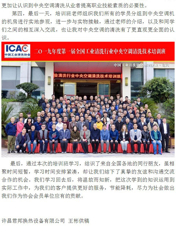 • 參加本年度第一屆全國工業(yè)清洗行業(yè)中央空調清洗技術培訓班感言