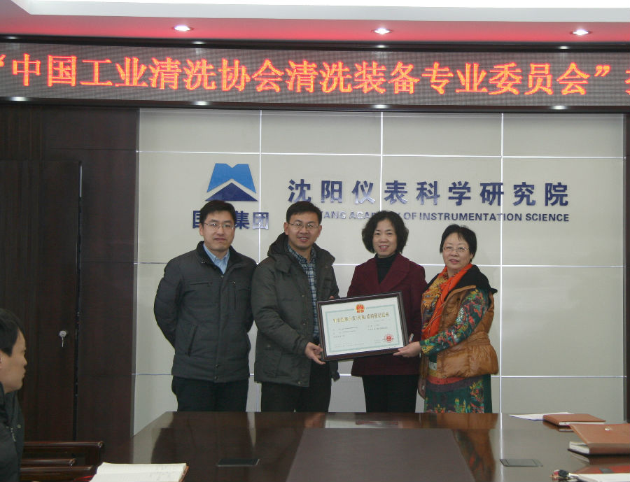 12月19日,中國工業清洗協會清洗裝備專業委員會頒證儀式在沈陽儀表科學研究院舉行,中國工業清洗協會秘書處周新超副秘書長代表協會向清洗裝備專業委員會掛靠單位——沈陽儀表科學研究院頒發了專委會登記證書(見圖1)。清洗裝備專委會主任委員由協會副理事長、沈陽儀表科學研究院院長曾艷麗擔任,秘書長由沈陽儀表科學研究院匯博裝備公司銷售經理余菁華擔任。