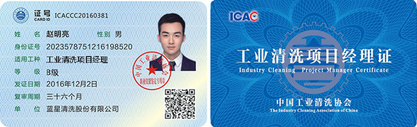 獲得證書:由中國工業(yè)清洗協(xié)會頒發(fā)的《工業(yè)清洗項目經(jīng)理證》